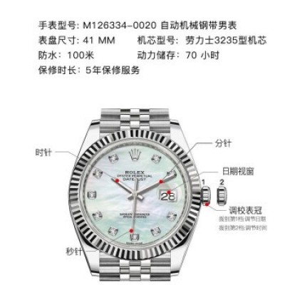 瑞士劳力士ROLEX手表日志型41系列自动机械男表M126334- 0020白珍珠带钻五格链